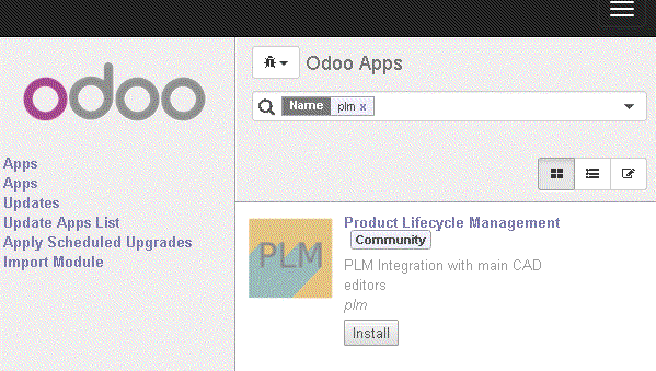 Now login to odoo create a new database and install the odooPLM module from the odoo Apps interface
